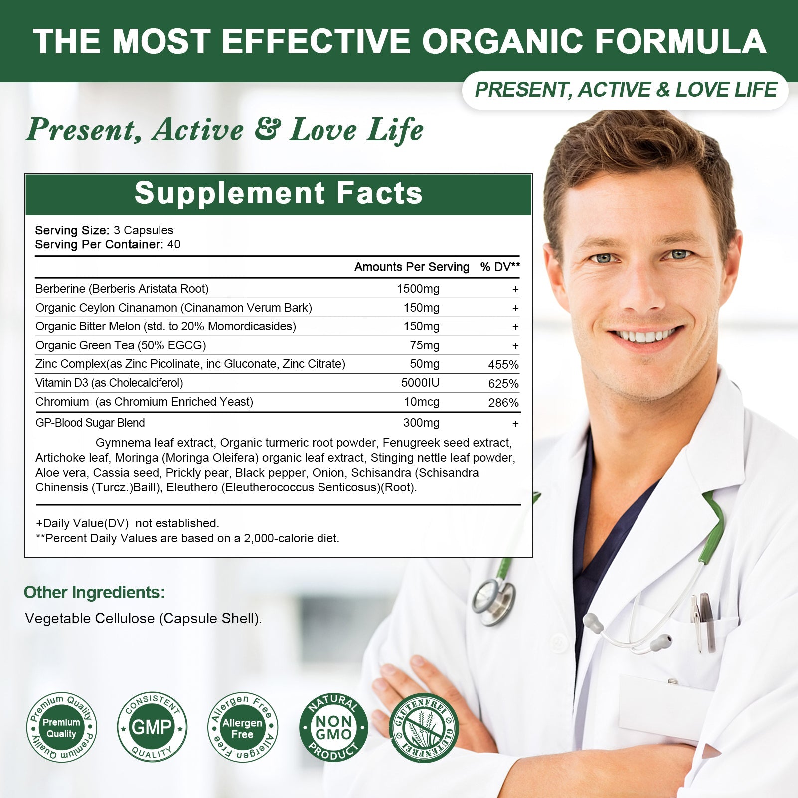 • Supporta il Controllo della Glicemia: Grazie alla Berberina e ingredienti come la Foglia di Gymnema, questo integratore aiuta a mantenere livelli di glicemia sani e riduce le voglie di zucchero, offrendoti un migliore controllo sulla tua dieta.