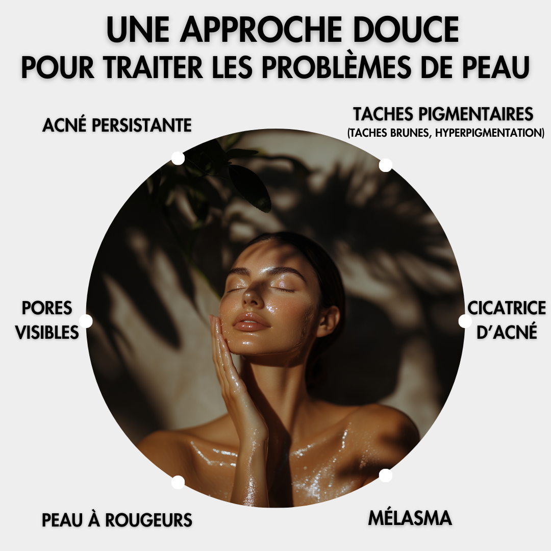 La formula con curcuma e acido kojico agisce su iperpigmentazione, cicatrici da acne e pelle irregolare, ripristinando il naturale splendore e la composizione equilibrata della tua pelle.